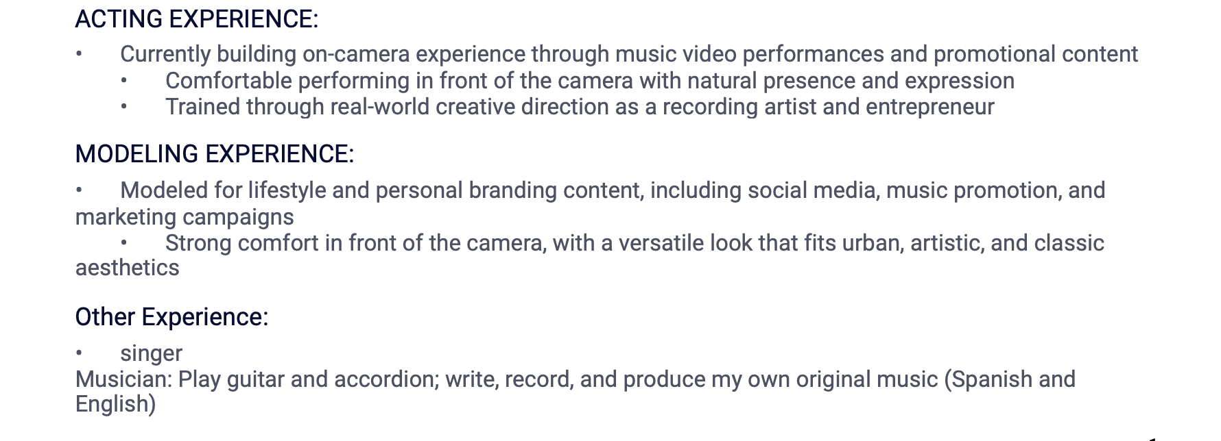 ACTOR | MODEL | MUSICIAN